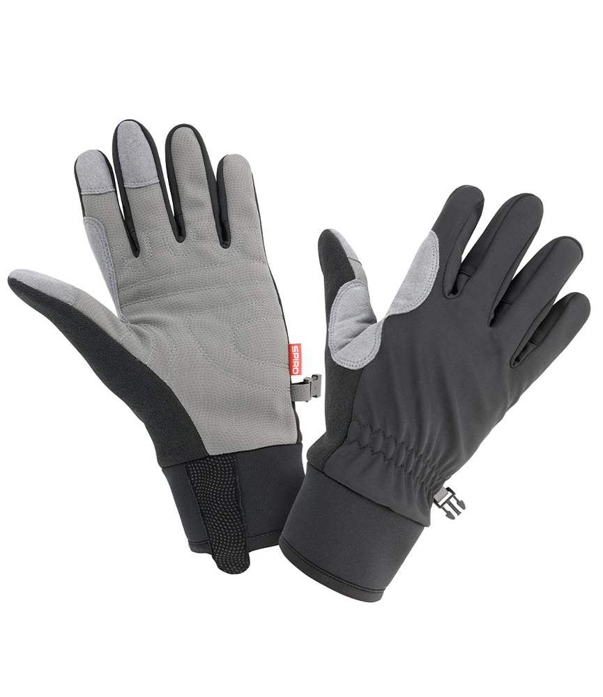 100% polyester. Polyurethane palm patches for added grip.Polyester inner padding.Tear and release wrist strap.