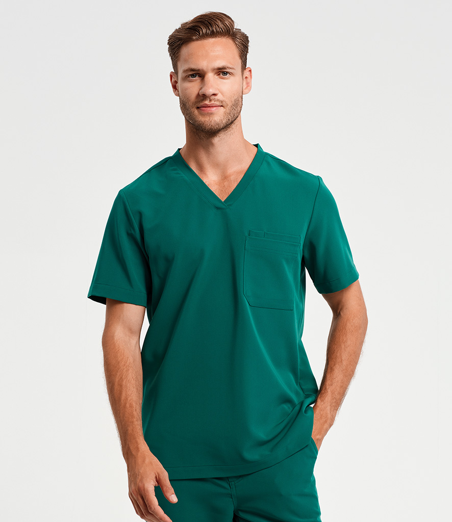 42% polyester/33% recycled polyester/19% viscose/6% elastane. Breathable four-way stretch fabric. Durable, crease resistant and easy care. Modern fit. V neck. Left chest pocket. Back darts. Side vents. 60°C wash.
