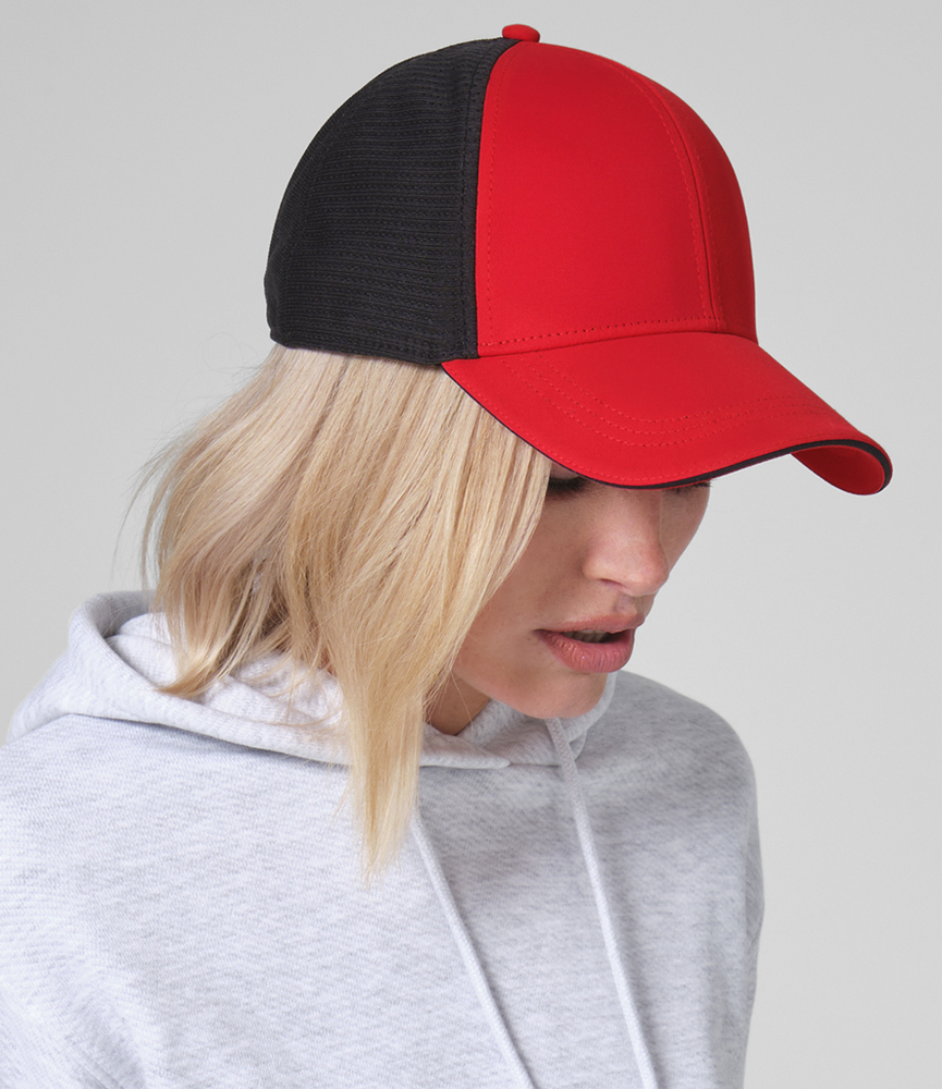 Polyester mesh rear panels.Moisture wicking, ultra soft sweatband.6 panel.Structured front panels.Pre-curved peak.Snapback size adjuster.Tear out label.